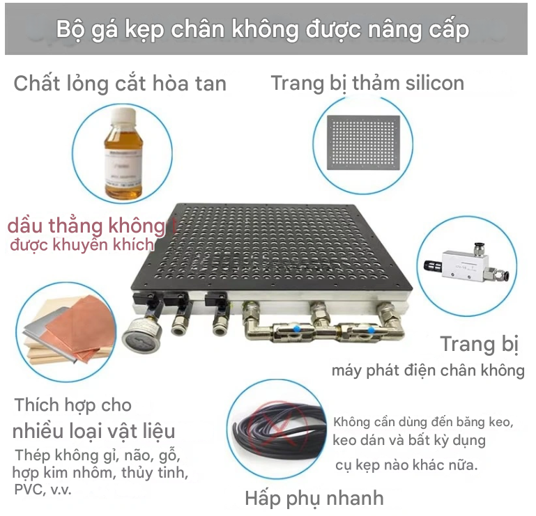 Bàn hút chân không là giải pháp tối ưu cho gia công CNC hiện đại, giúp tăng năng suất, giảm thời gian gá đặt và nâng cao độ chính xác sản phẩm.