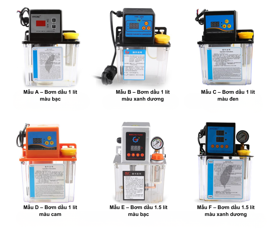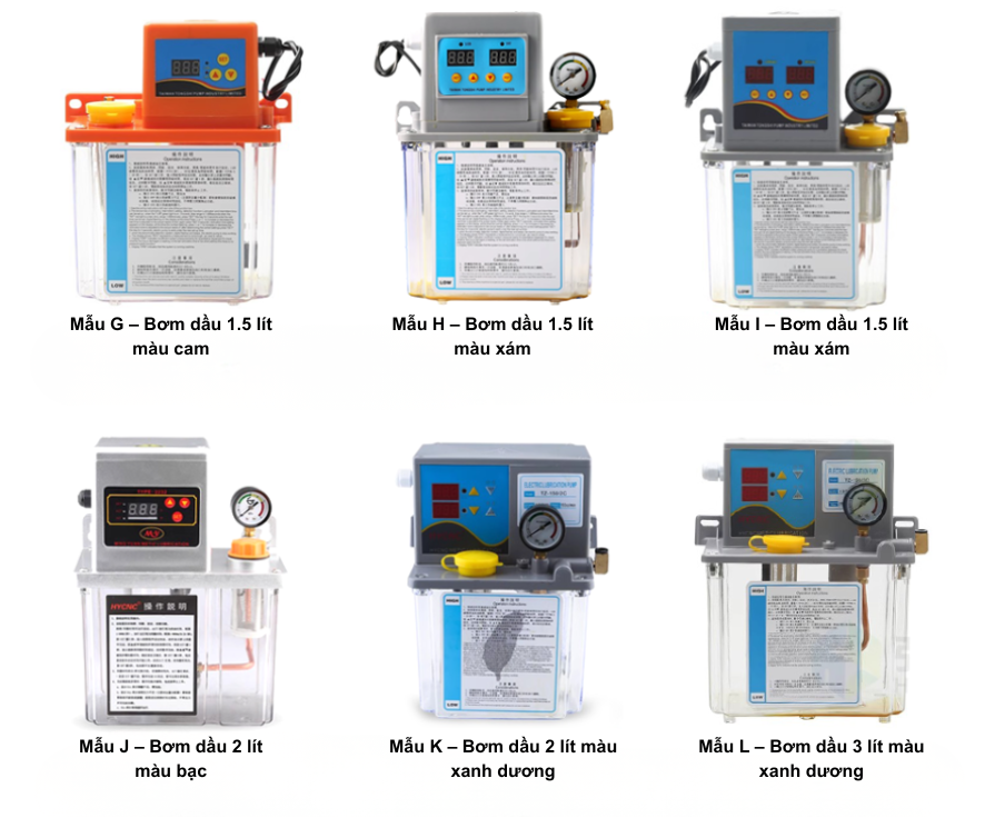 | E/F/G/H/I | 1.5L | 220V | 130 ml/h | 10m | 4MPa | Dòng phổ thông cho máy cỡ vừa |