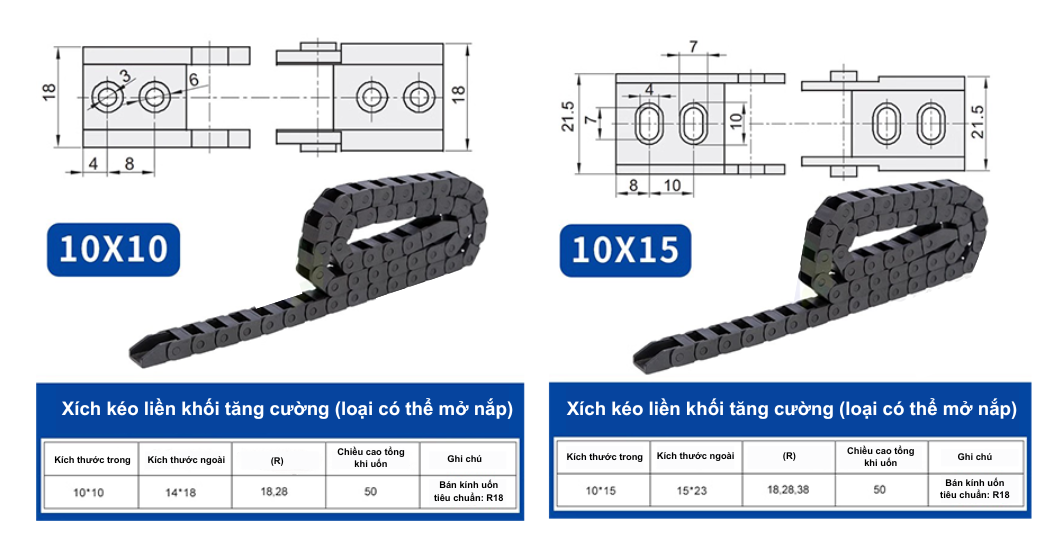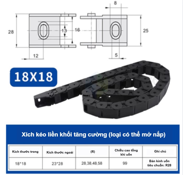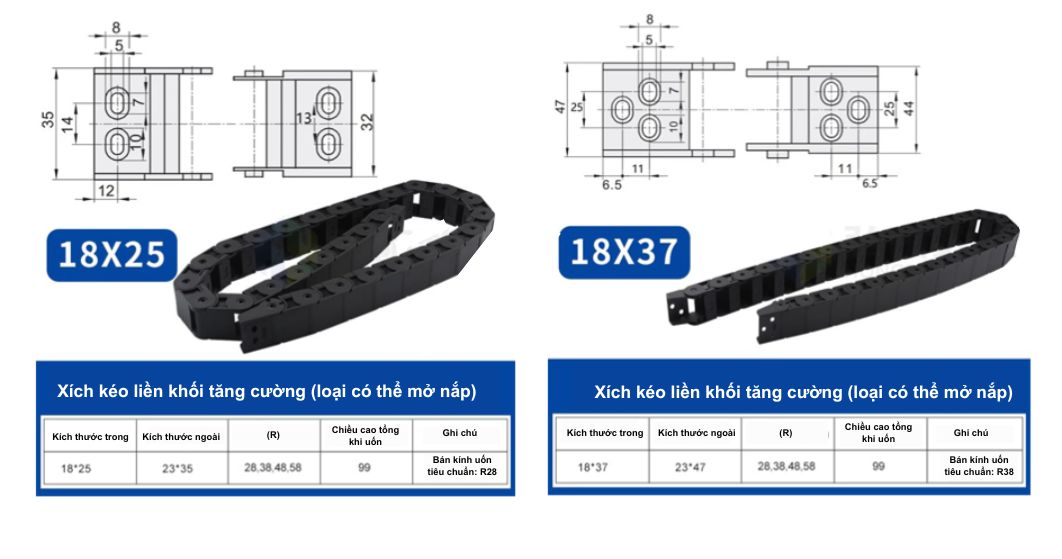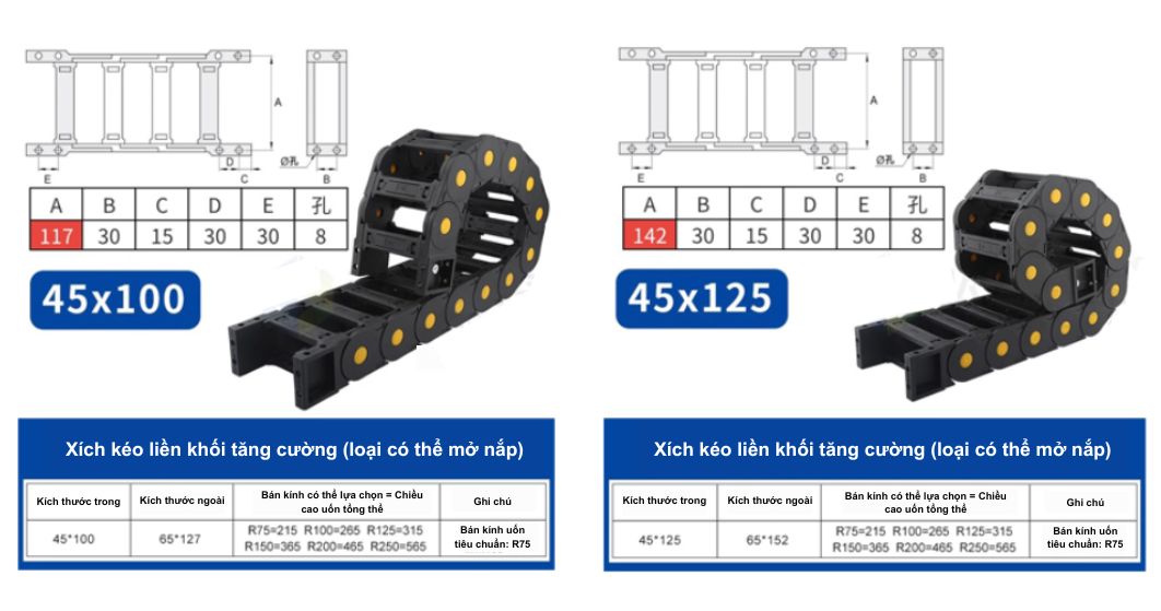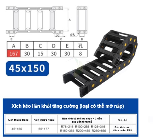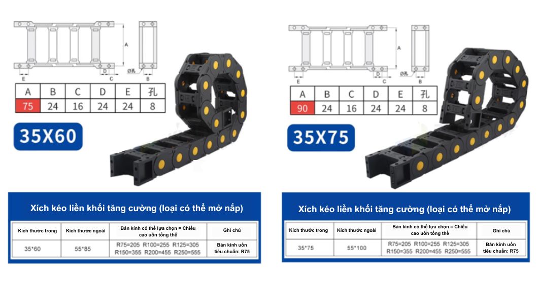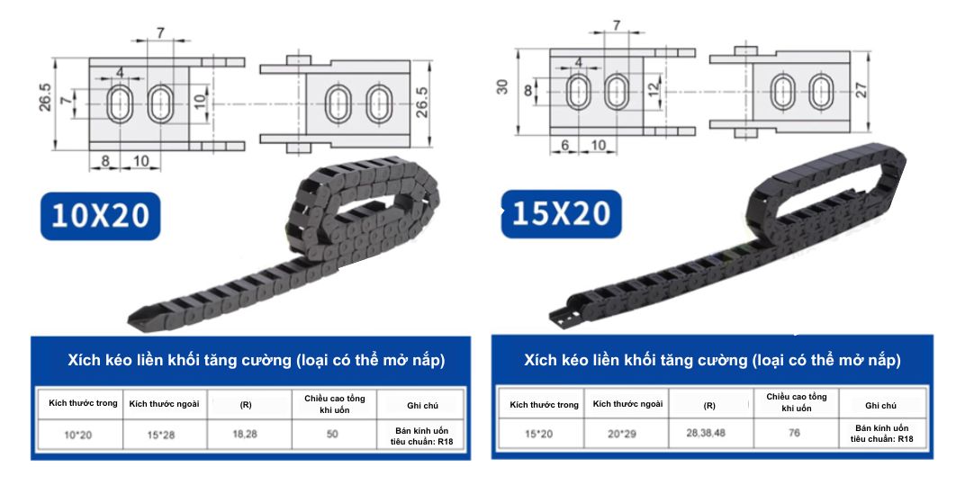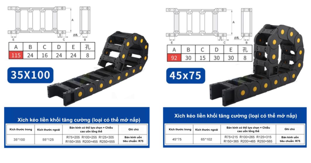 Dây trượt cáp (còn gọi là xích kéo dây CNC hoặc xích bảo vệ dây cáp) là phụ kiện không thể thiếu trong các hệ thống máy CNC, máy khắc, máy plasma, máy cắt laser, trung tâm gia công và dây chuyền tự động.