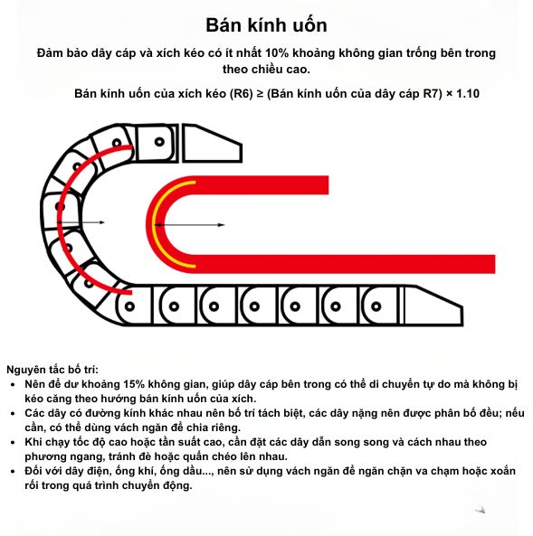 Bán kính uốn linh hoạt (R6–R250) – phù hợp mọi nhu cầu bố trí dây dẫn.