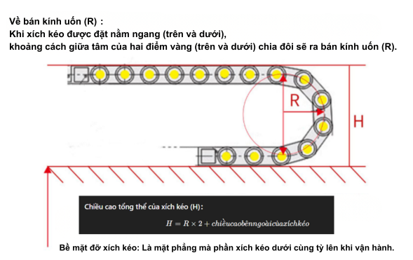 Bán kính uốn (R): Gấp ít nhất 10 lần đường kính dây để đảm bảo không gãy cáp.