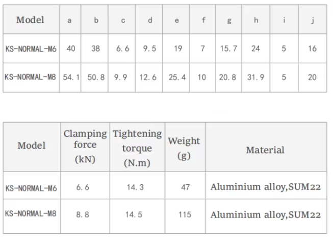 | KS-NORMAL–M8 | 8.8 | 14.5 | 115 | Aluminium alloy, SUM22 |
