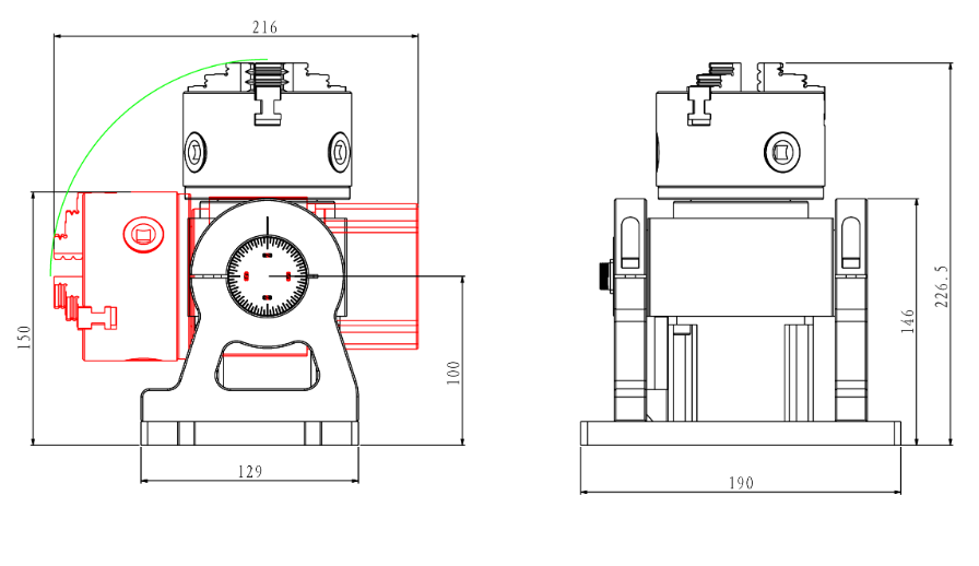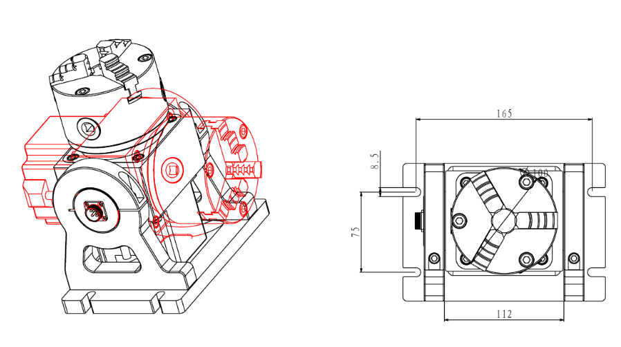 Trục thứ tư CNC HT90-10-100A là bộ đầu chia độ (Rotary Axis – A Axis) dùng cho máy CNC hoặc máy khắc laser, giúp gia công các chi tiết tròn, trụ, khắc xoay 360° với độ chính xác cao.