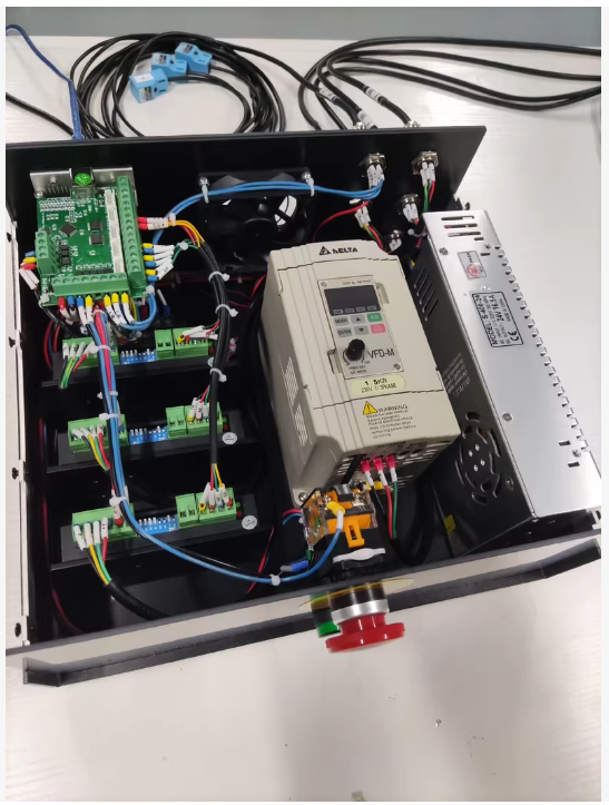 ➡️ Có, tủ sử dụng biến tần Delta VFD hỗ trợ spindle từ 1.5kW đến 2.2kW.