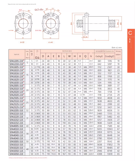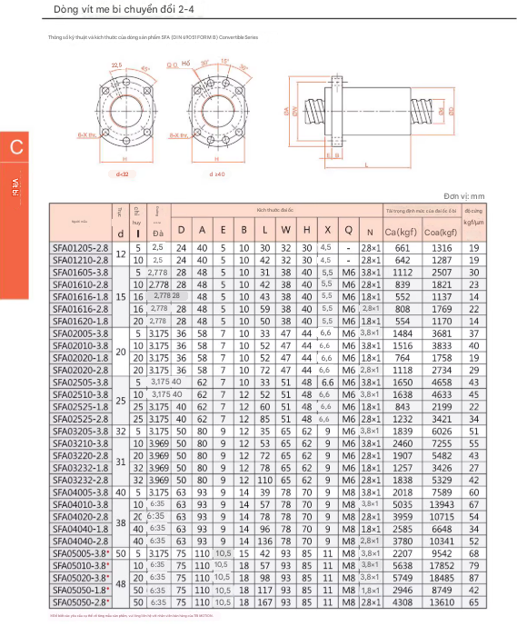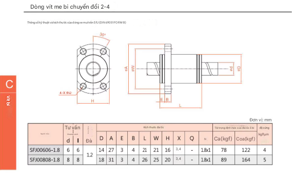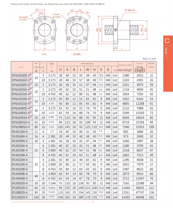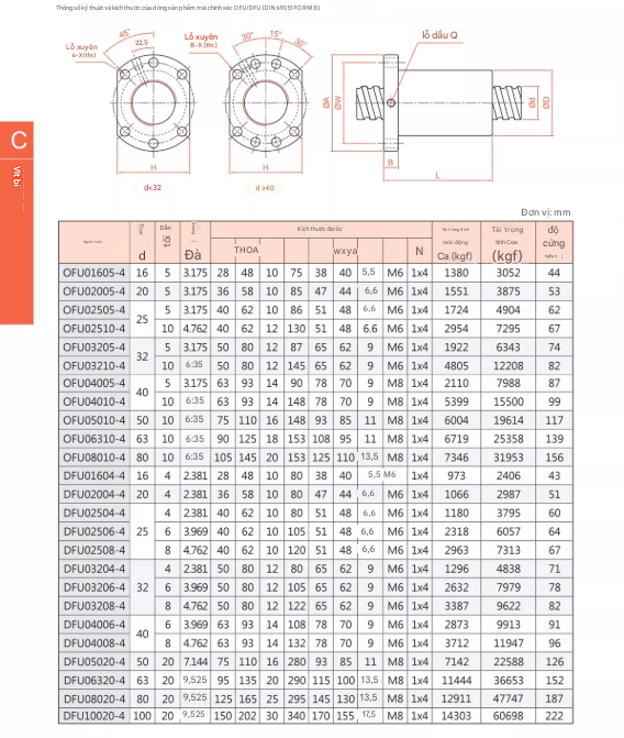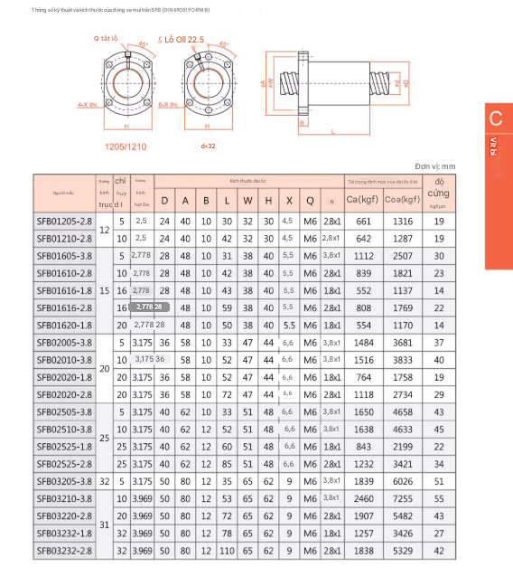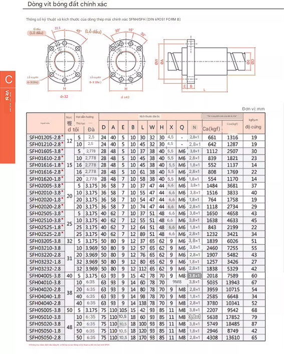 Các model vitme thường được sử dụng trong chế tạo máy CNC: